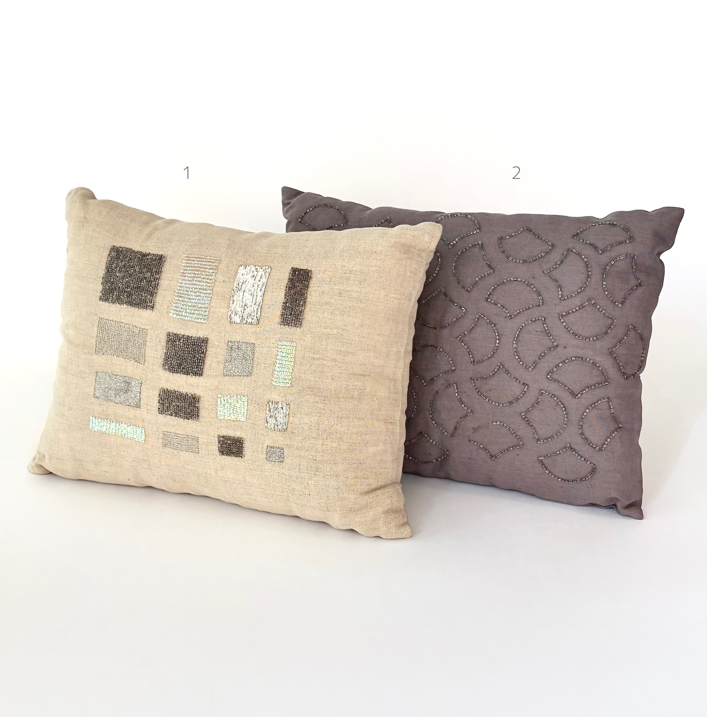 クッション BARNEYS ビーズ刺繍 リネン〈ピロー型〉 色:Light Beige / Purple 取扱店舗:Osaka