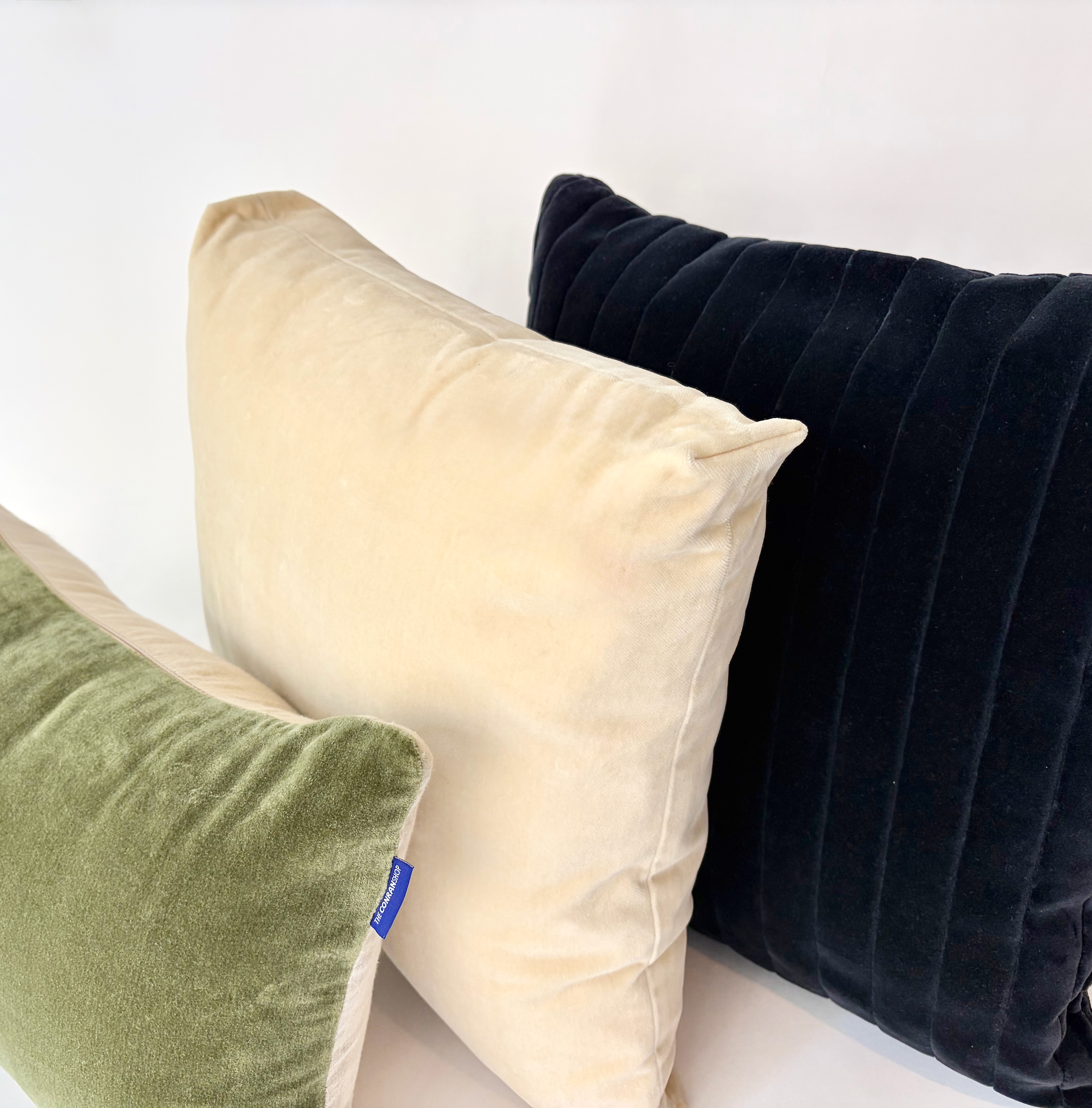 1→W.500 H.300 【THE CONRAN SHOP】 ベロア×リネン 色.Olive×Light Beige ¥1,800(ヌード無 ¥1,300)