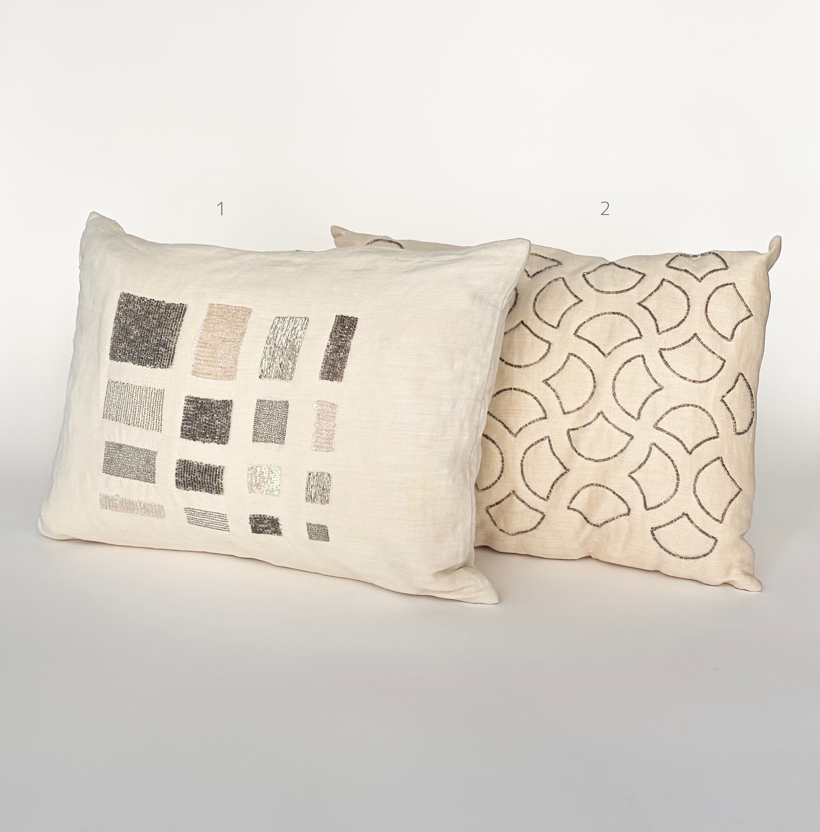 クッション BARNEYS ビーズ刺繍 リネン〈ピロー型〉 色:Off-White / Light Beige 取扱店舗:Osaka